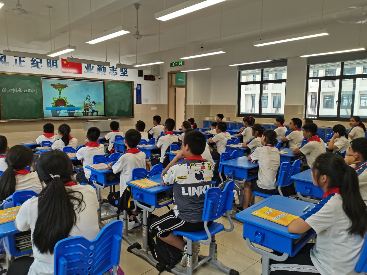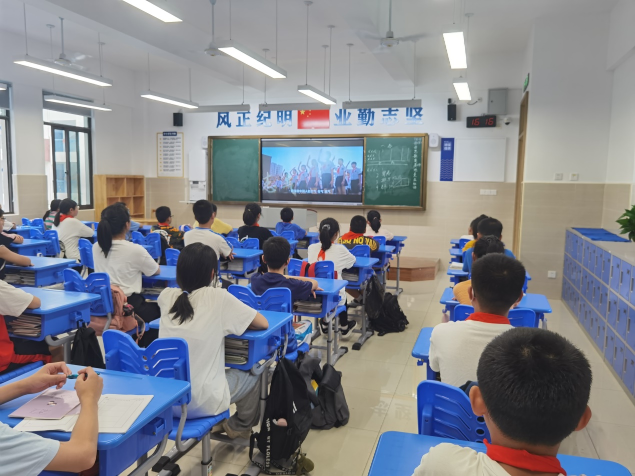 伴随着雄壮的国歌声,五星红旗冉冉升起,全校师生齐唱国歌,开学典礼由此拉开帷幕。